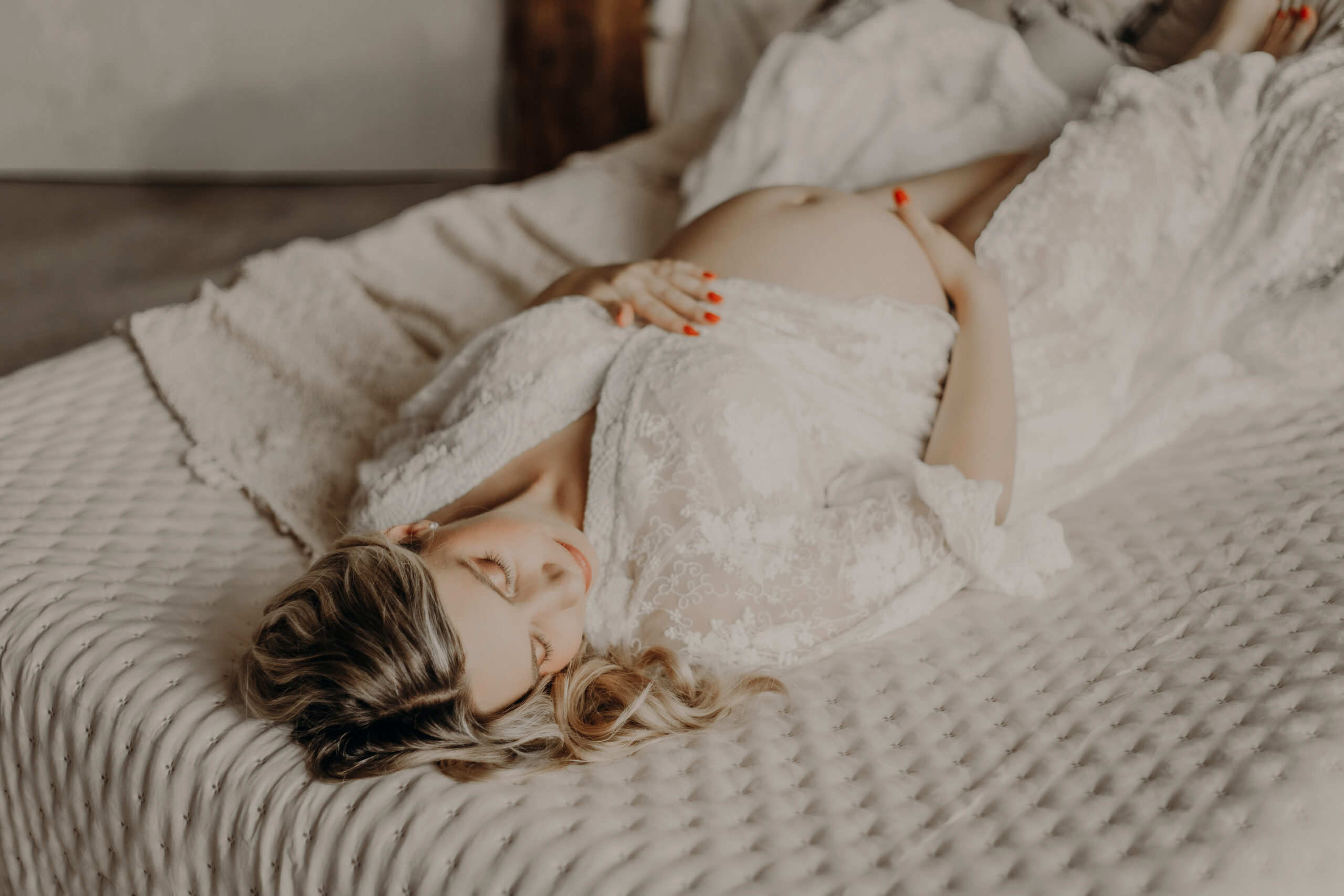 Du musst dich nicht „fertig“ fühlen, um diesen Meilenstein festzuhalten. Schwangerschaft ist keine perfekte Phase. Durch Licht, fließende Kleider und sanfte Anleitung entstehen Bilder, die nicht kaschieren, wer du bist, sondern dich in deiner Kraft zeigen.