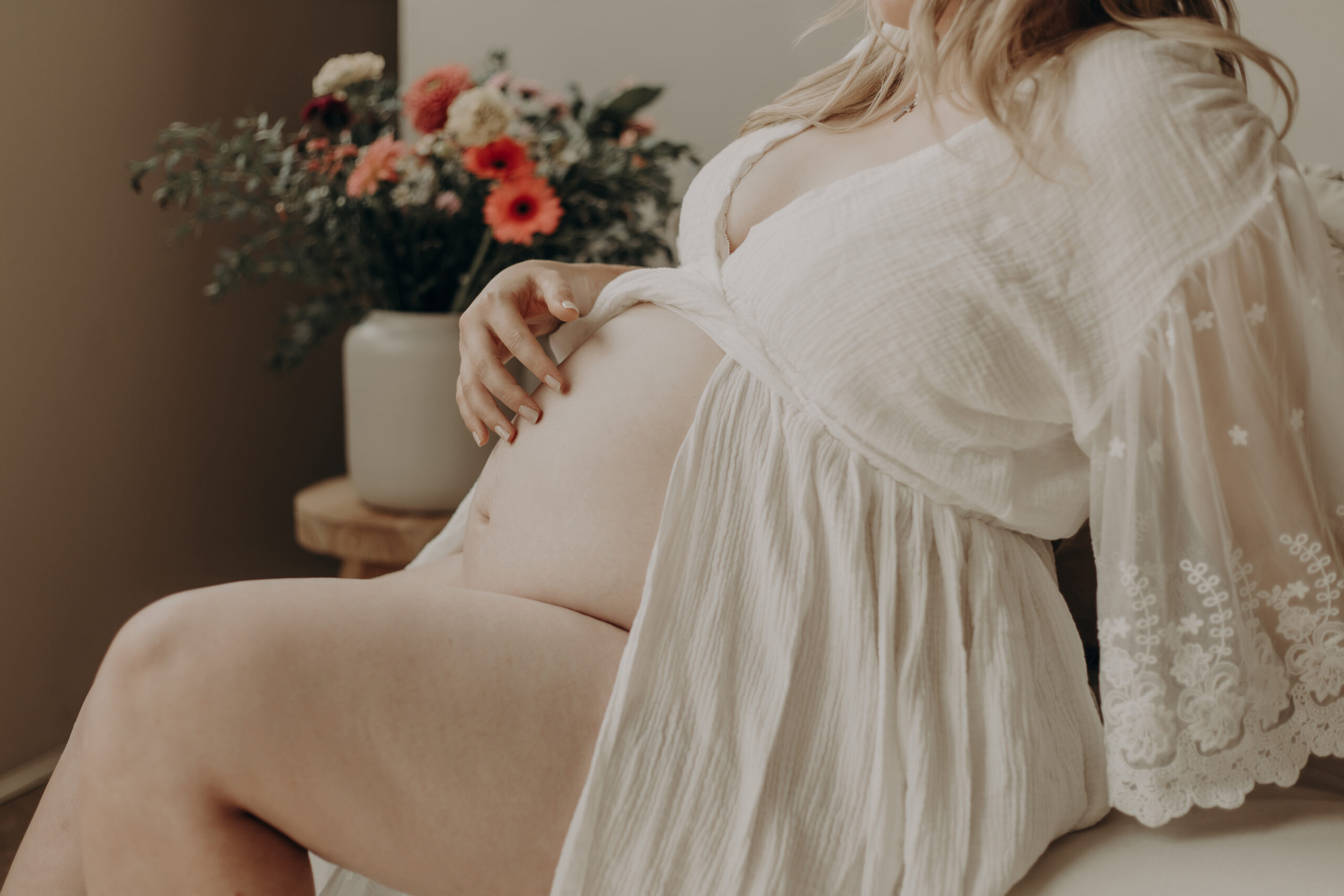 Dann darf genau das da sein. Du musst nichts leisten. Schwangerschaft ist kein Hochglanzmoment. Sie ist ein Wandel. Und manchmal entstehen gerade aus diesen ehrlichen Momenten die kraftvollsten Bilder. Hier muss nichts perfekt sein. Die Bilder dürfen zeigen, wer du in dem Moment warst und wie du dich gefühlt hast. Ich nehm dich an die Hand und gebe dir den Raum, den du brauchst.