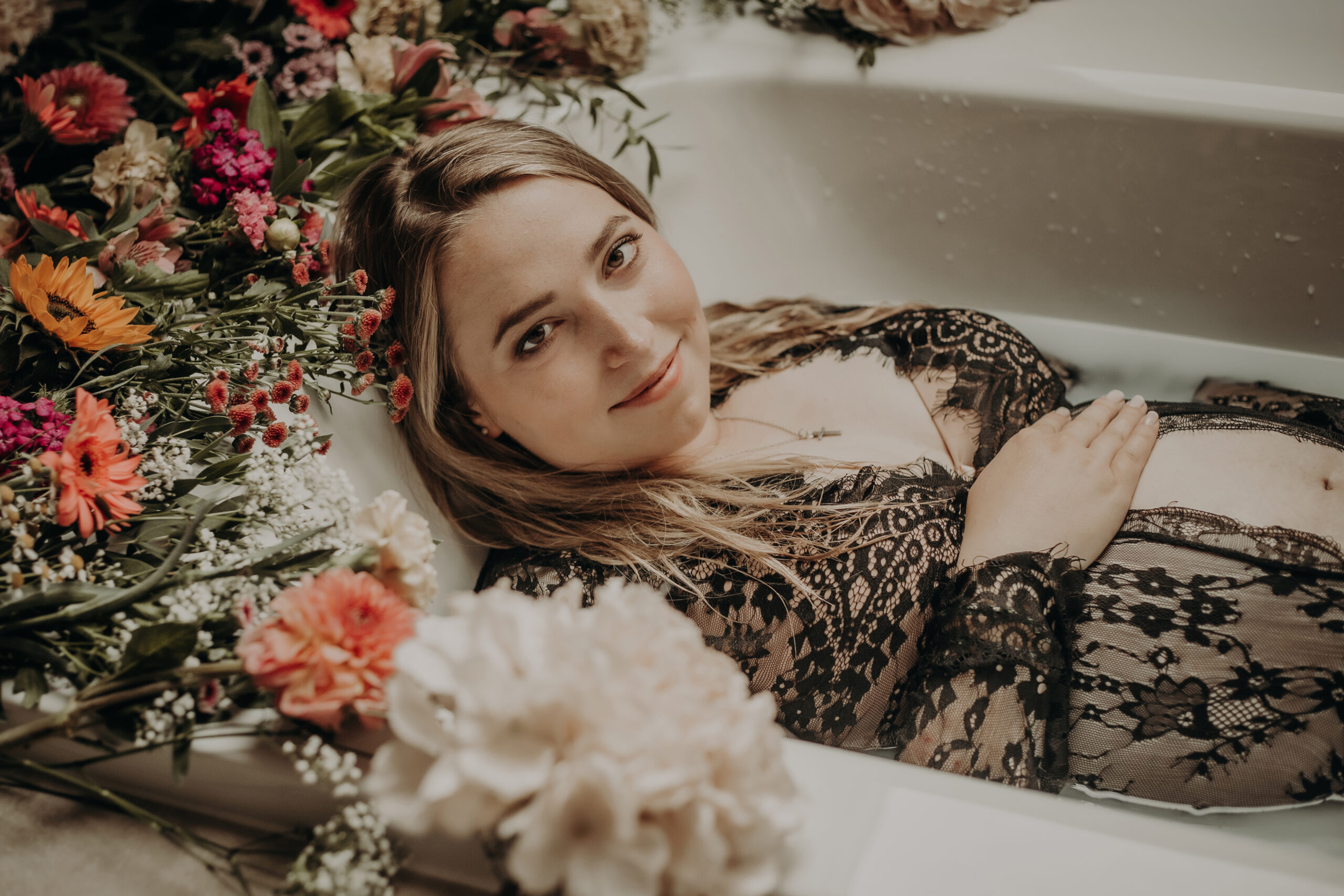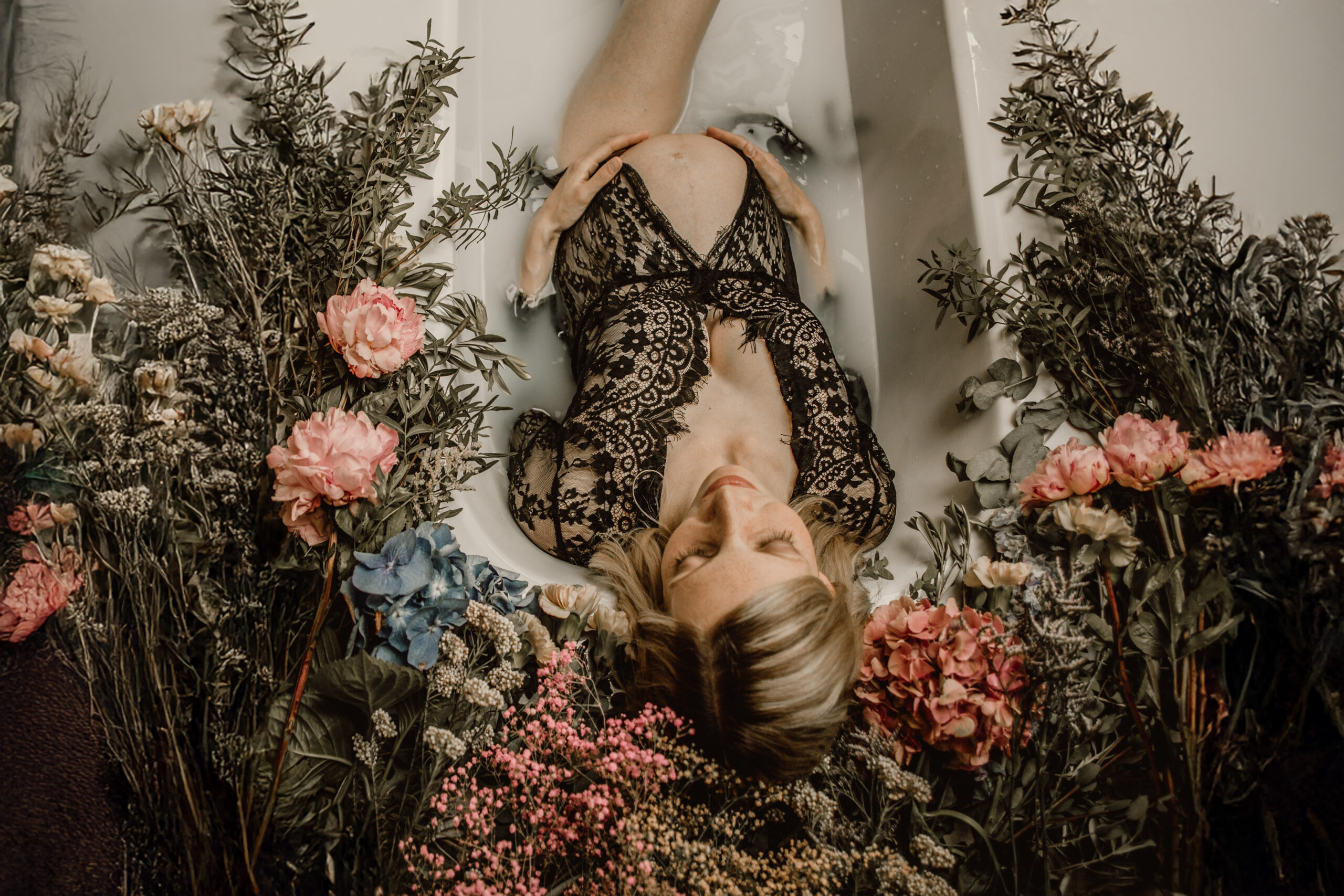 Ich arbeite sehr gerne mit Blumen, sowohl mit Trockenblumen, als auch mit ganz frischen Blumen, die wir unter anderem für Dein ganz besonderes Milchbadshooting verwenden. Damit die Freude an frischen Blumen auch dir zuteil wird, schenke ich dir einen kleinen Blumenstrauß, um dir auch ein wenig die Wartezeit auf Deine Bilder zu versüßen.